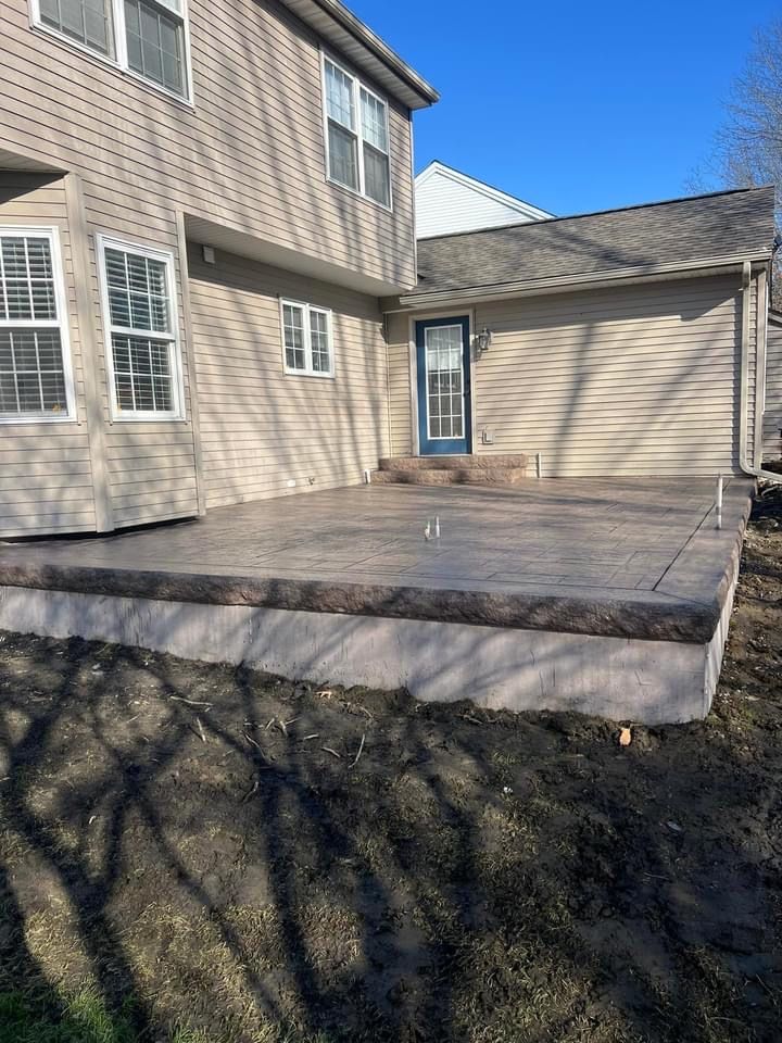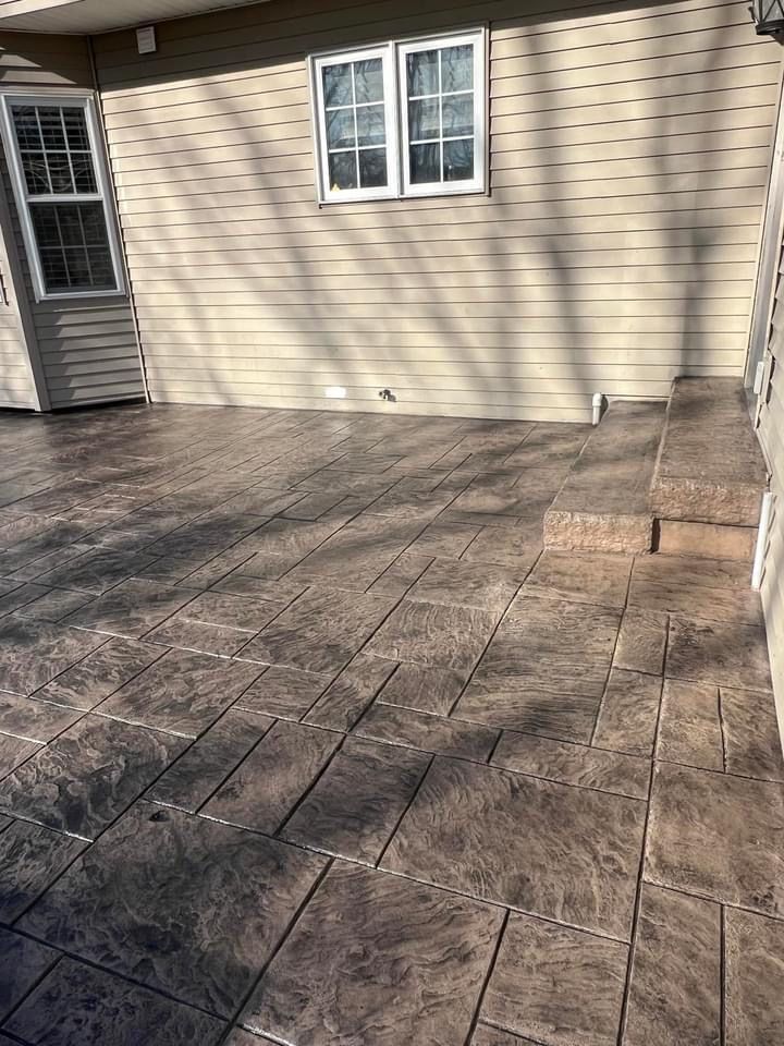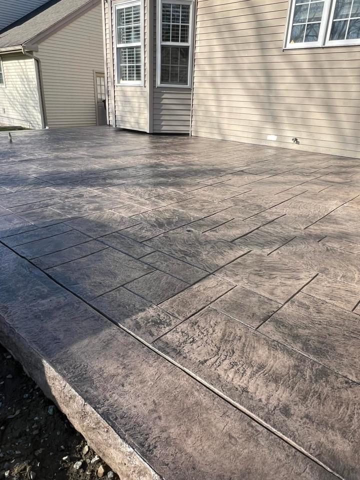 Stamped concrete can use to create beautiful patios, walkways, driveways, pool decks, and more. Installing stamped concrete is a more versatile and durable option than traditional materials. Stamped concrete requires less maintenance, is more cost-effective, and comes with a range of textures and colors you can choose from. The concrete can be texturized, patterned, and colored to resemble pavers, brick, slate, stone, tile, or wood. Our decorative concrete services include: